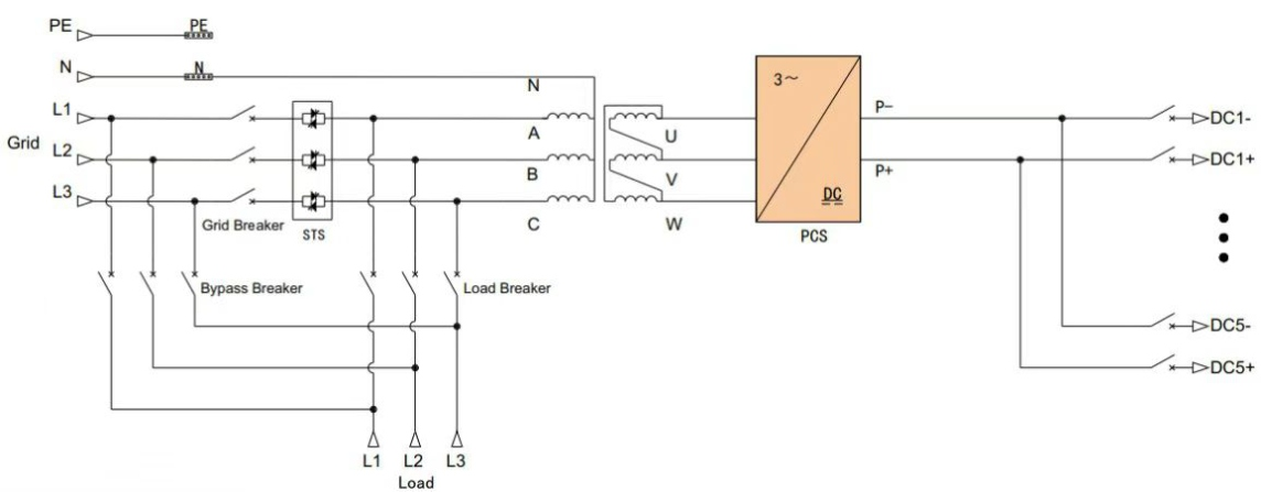 1. Belastninger på mere end 500 kW, det anbefales at bruge en 500 kW energilagringsinverter med stor kapacitet på 500 kW, som er i stand til at understøtte op til fire sæt parallelle forbindelser og opnå en samlet effekt på 2 MW;
